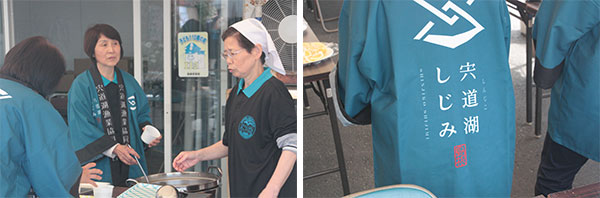 宍道湖のほとり、一畑電車津ノ森駅付近では75km地点エイドステーションが設置され、地元しじみ漁協の方々より宍道湖で獲った大粒のしじみを使ったしじみ汁が提供されました!
