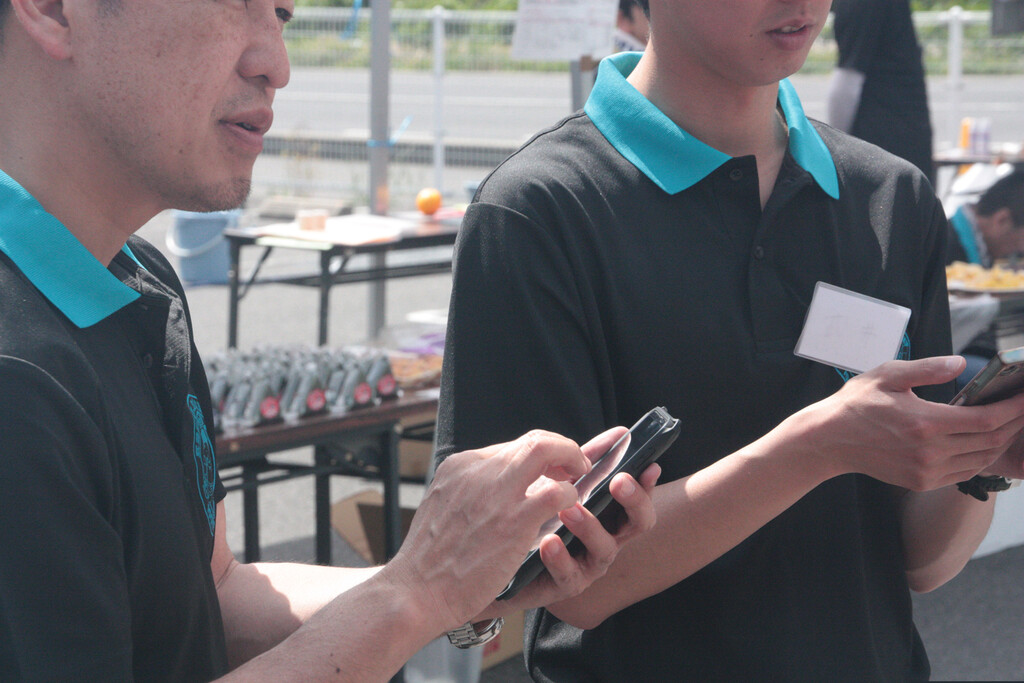大会スタートは早朝5:30、スタッフの方々はまだ辺りも暗い早朝3:00から準備を開始しました。大会当日から参加の実行委員メンバーやボランティアスタッフも多数いるため、朝一番からLINE WORKSの利用レクチャーが始まりました。