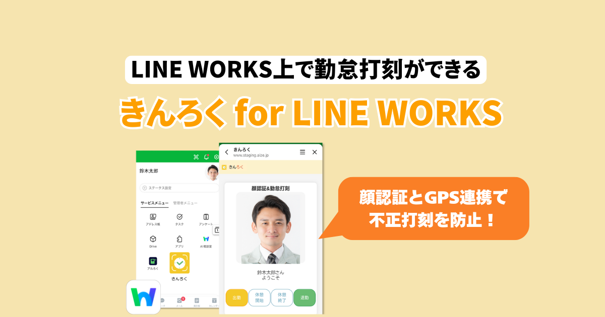 BLOG LINE WORKSチームがお届けする情報ブログです。 すべて 活用事例 連携ツール 機能紹介 イベント 会社情報 ビジネスチャット 働き方改革 Menu すべて 活用事例 連携ツール 機能紹介 イベント 会社情報 ビジネスチャット 働き方改革 telework 在宅勤務, テレワーク, 時差出勤 連携ツール 勤怠打刻がLINE WORKS上でできる「きんろく for LINE WORKS」 ✨️管理者画面から簡単に「きんろく for LINE WORKS」のアプリが設定ができるように✨️ こんにちは、LINE WORKSです。 突然で 2025.06.20 活用事例 機能紹介 電話の取り次ぎに悩んでいます(お悩み相談室#10) こんにちは! 【仕事のお悩み相談室】のコーナーです。 このコーナーでは、はたらく人が直面するさまざまなお悩みを募集して、それを解決できそうなアイデアを考えます。 2025.04.23 活用事例 連携ツール 「ネットプリント」でLINE WORKSからすぐ印刷! こんにちは、LINE WORKSです! 本記事では、LINE WORKSのアプリディレクトリに新登場したアプリ「ネットプリント」をご 2023.08.16 活用事例 連携ツール ビジネスチャット 働き方改革 紙の使用量40%削減と情報共有の速度アップを、まとめて実現するツール! DXの本当の成果は、効率化アップによる社員の負担軽減 2022.12.21 活用事例 【事例付き】日報や売上報告などの業務報告を効率化しよう! ノート機能を使うと、業務報告がいつでもどこでも提出・確認ができます。 1. 日報・週報・売上報告をいつで 2022.07.15 活用事例 逆引き!LINE WORKSの活用事例4選 業務内容や課題別にLINE WORKSの活用事例と導入のコツをご紹介します! LINE WORKSは仕事で使えるさまざ 2022.06.17 活用事例 カレンダーは「使い分け」がカギ!スケジュール管理のヒント カレンダーを便利に使うための基本設定や種類についてご紹介します。 1. LINE WORKSのカレンダーで何ができるの 2022.05.18 働き方改革 出勤者7割削減が目標!今からはじめる「テレワーク」まとめ こんにちは、LINE WORKSマーケティングチームです。 緊急事態宣言が1都3県に対して発令されました。 改めてテレワーク・リモートワークの導入 2021.01.13 活用事例 医療現場で的確に対応する方法 患者の命を預かる医療現場では、正確で迅速なコミュニケーションが大事です。 LINE WORKS を利用すれば、状況に合わせて適切なコミュニケーションを実現するこ 2020.10.20 もっと見る 9 15