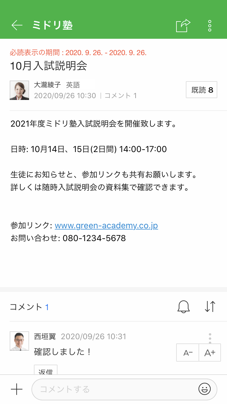 活用事例 授業計画を効率よく管理する方法 2020.10.20 複数のクラスを担当しているとスケジュール管理が大変ではありませんか。 受付では講師の時間割を把握したり、急な時間割の変更で空き教室を探さなければならないこともあります。 LINE WORKS を活用して講師と受講生のスケジュールを効率よく調整しましょう。 スケジュール管理ツールとしての LINE WORKS の特徴 講師の時間割や教室の空き状況を簡単に把握できます。時間変更や休講の際にも柔軟に対処できます。テスト期間やイベントなどの重要な予定を周知できます 1. 時間割を一目で把握する 講師のスケジュールを確認し、補講や面談が必要な際には空いている講師に連絡しましょう。 受講生の急な欠席、講師の欠勤時にもすぐにトークで連絡をとり、カレンダーの情報をアップデートできます。 緊急のミーティング時にも、空き時間の候補から素早く予定を押さえることができます。 メンバーの予定を確認する方法はこちら > 講師ごとの時間割 カレンダーで空き時間を確認 2. 教室や授業で使う設備はすべてカレンダーで予約する 授業を始めようとして、教室が変わっていたり授業で使う機材がなくて困ったことはありませんか? LINE WORKS カレンダーは使用可能な教室や設備をすぐに確認して予約できます。 メンバーと設備の空き時間を確認する方法はこちら > 教室や設備の予約 設備リスト 3. 講師と受講生が重要な予定を見逃さないよう 月末のテストや入試説明会など、重要な予定を講師や受講生に個別に連絡しなくても、ホームで一斉周知できます。 特に徹底したい場合には「必読」設定があり、投未読メンバーには再通知を送ることができます。 メールよりも既読率上がり、確実に情報を伝えられます。 既読状況の確認する方法はこちら > ホームに入試説明会のお知らせを登録 未読メンバーに通知を再送信 教育環境を改善する秘訣は「LINE WORKS」にあります。 活用事例 チームワーク カレンダー活用 教育業 ※ 本掲載記事の内容は投稿当時の情報となり、2022年4月1日に改定された新料金プランとは一部異なる内容を含む場合があります。