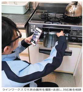 ブランケットは水回りや灯油、ガラスのトラブルの一次対応や電球交換等に社員が駆け付ける。ラインワークスはお客さまセンターから担当者に出勤を要請する際に用いる。同センターの市川朋子さんは「現地対応の報告もラインワークスで受けている」と説明する。