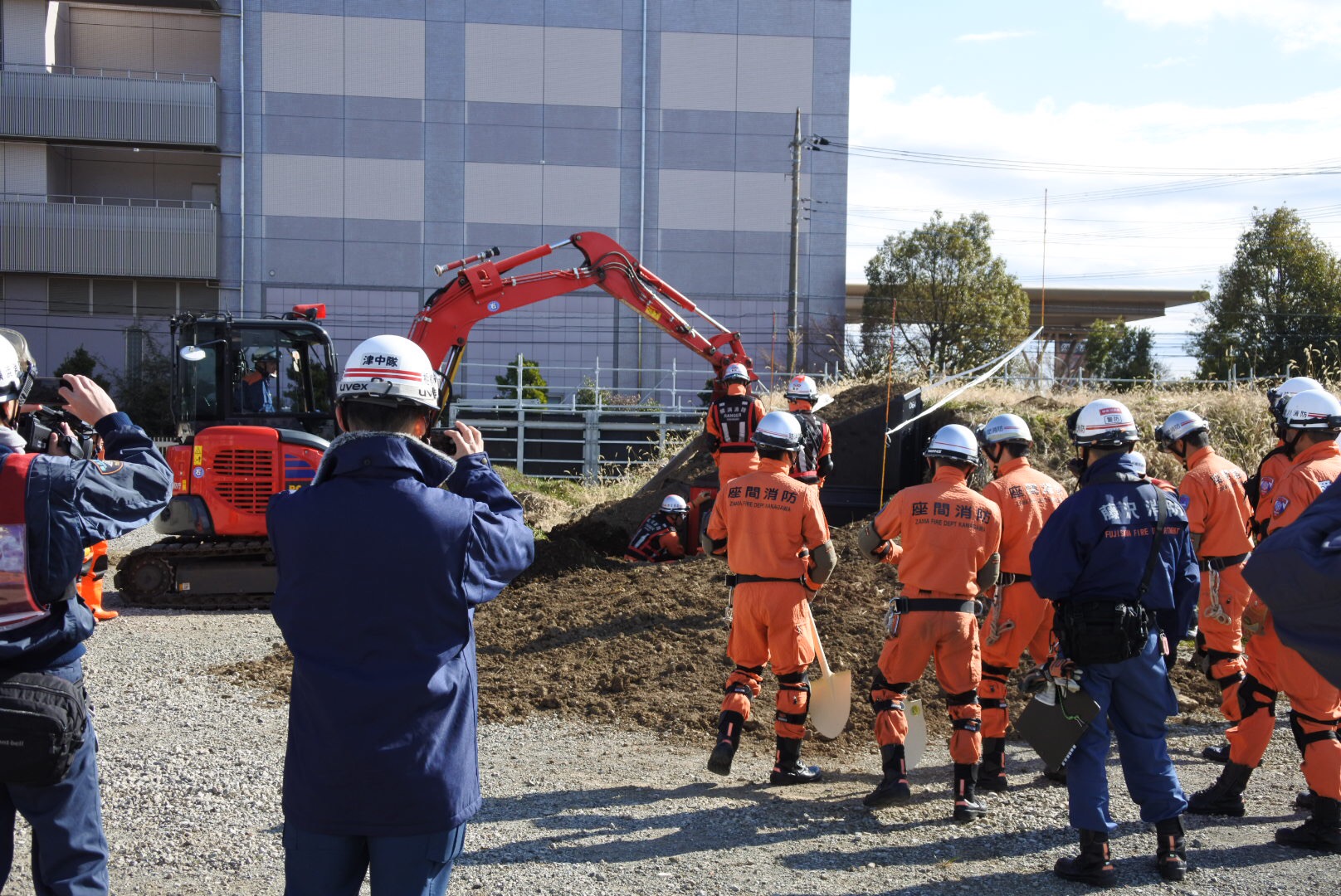 土砂災害救助訓練:土砂災害現場での災害救助犬と連携した捜索、救助