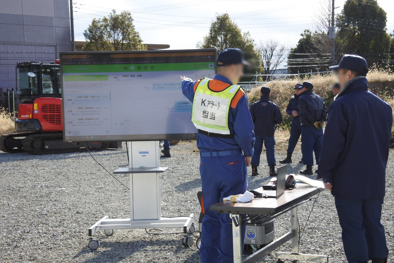 被害に遭った方の救助活動の後、LINE WORKSでの報告が行われ、土砂災害訓練が終了しました。