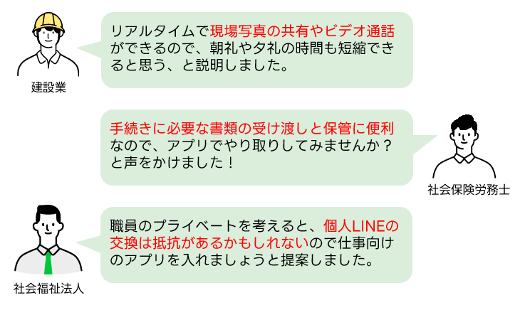 また、プライベートで使っている個人LINEを教えてもらう必要がないので、協力会社からも好評です!