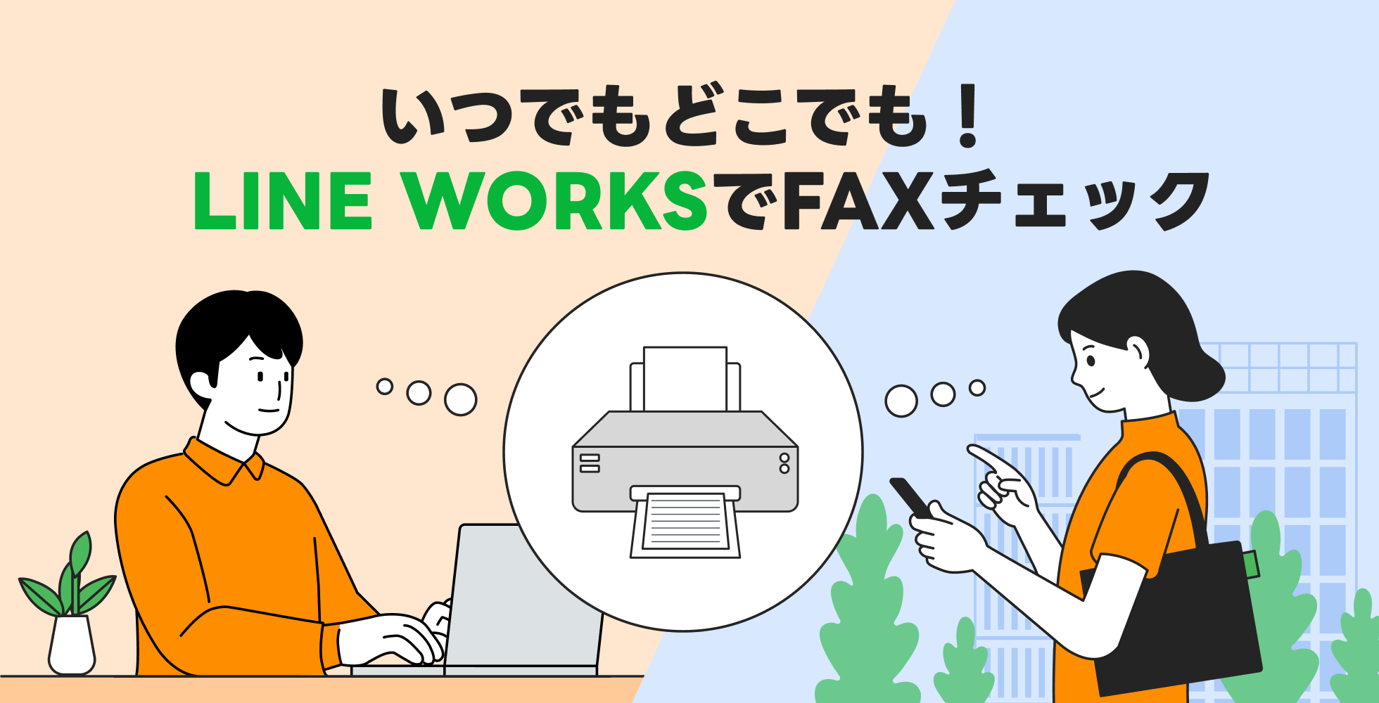 FAX確認のために出社する必要はもうありません。テレワークの可能性がひろがります。