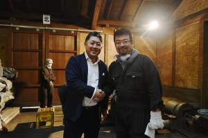 操業ツアーにて、株式会社田部 代表取締役社長であり、田部家二十五代目当主である田部長右衛門氏との記念撮影をさせていただきました。