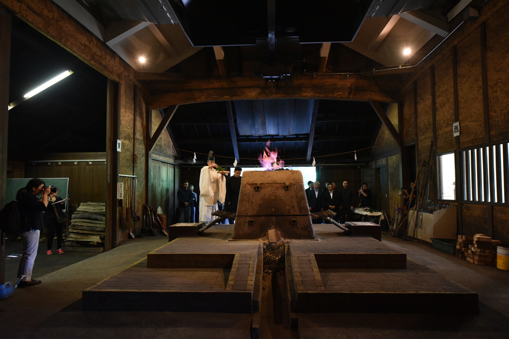 操業前に、たたら操業の無事を祈る神事を、厳かな雰囲気の中で執り行いました。