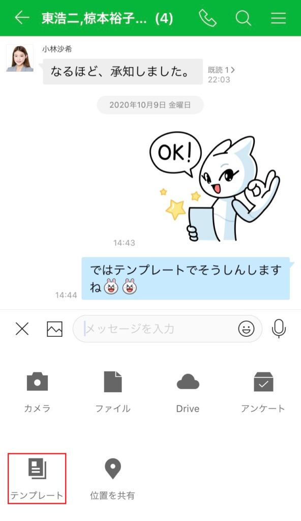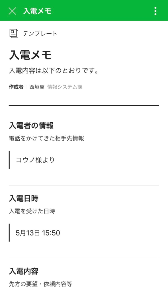 テンプレートに内容を入力してトークで共有したり、ホーム、ノートでテンプレートから投稿してみましょう。