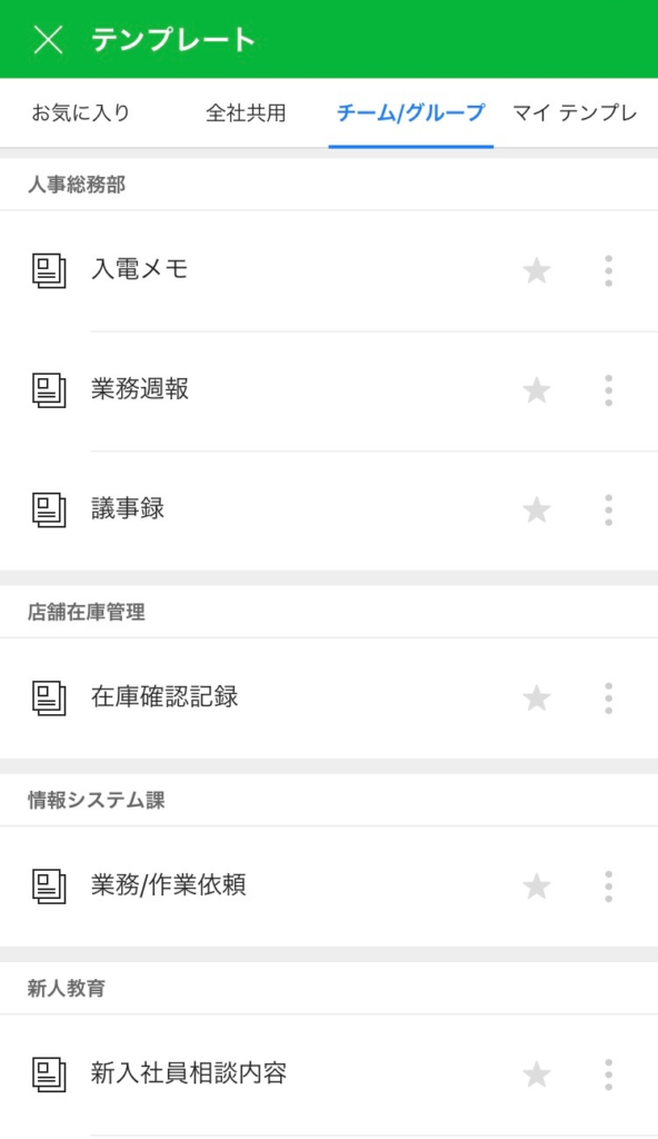 チームやグループのメンバーが使うテンプレートは「チーム/グループ」に追加して分類すると便利です。