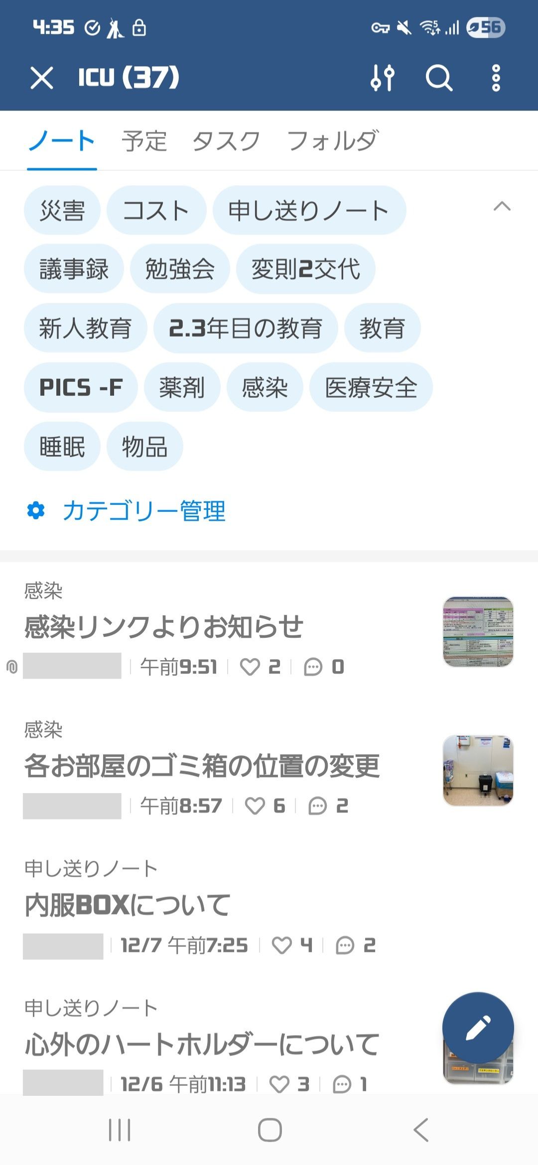 ノートの使い方は全体に周知しています。方針については主任や師長に相談して決定しています。例えばノートの投稿時間を限定しようと考えたのですが、交代勤務なので難しいという結論となり、投稿時間は決めないことにしました。みんなで使うものなのでルール策定については慎重に検討しています。