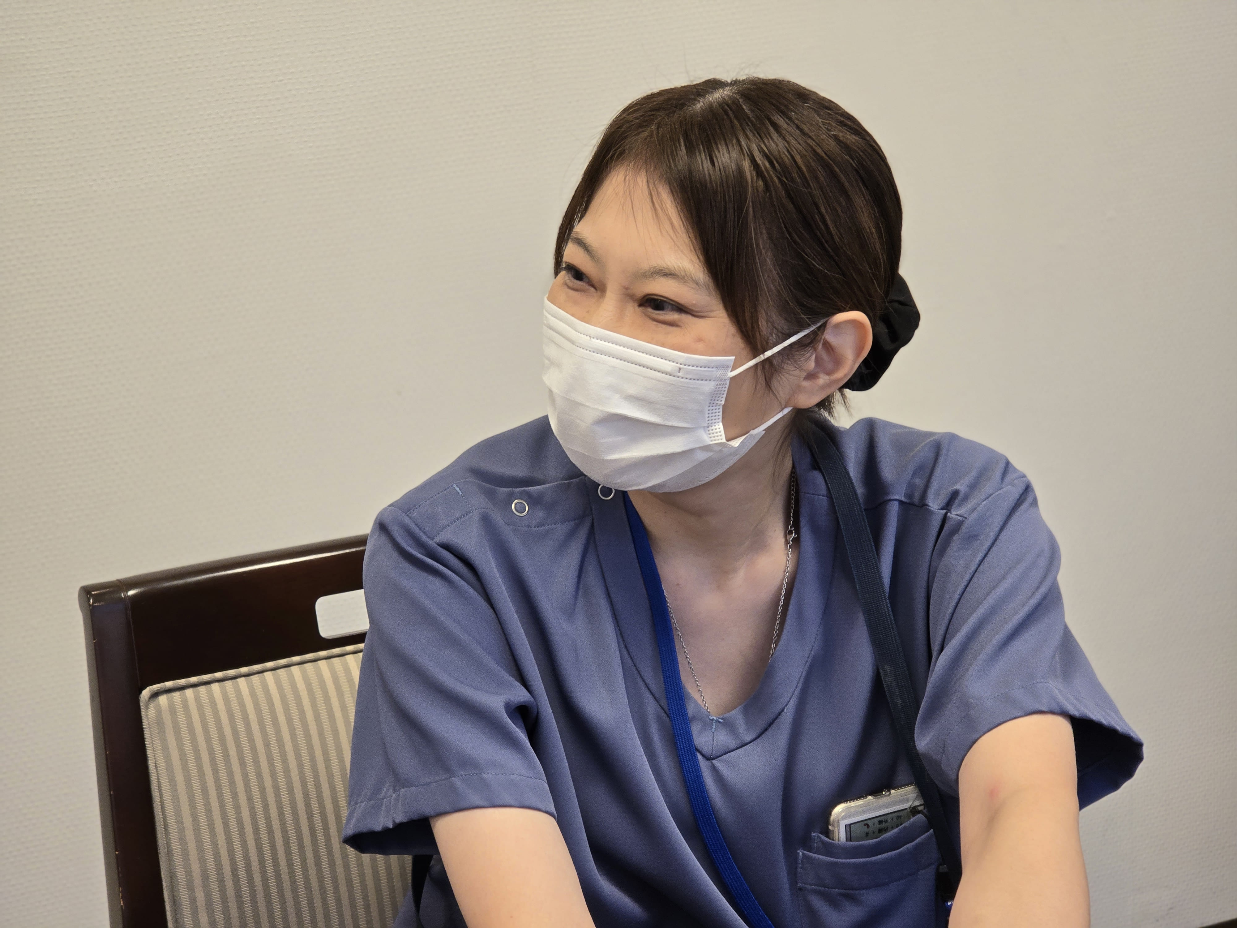 看護師としては19年目になります。(横浜市)東部病院ではトータルで11年目くらい、実は一度退職して出戻って2年目なんです。離れている間は別の病院で働いていましたが、東部病院は働きやすく、他職種との連携がとてもとれていて、いろんなカンファレンスで患者さんについて話し合い、治療や看護を提供しているところが魅力だと改めて感じました。メディカルスタッフ、病棟や救命センターなど、他の部署との横のつながりが密で「これが東部病院の強みだな、また働きたいな」と思ったんです。
