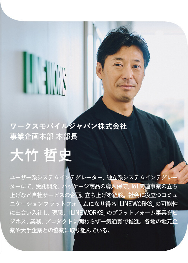 そう語るのは「LINE WORKS」を手掛ける、ワークスモバイルジャパン事業企画本部長の大竹哲史氏だ。