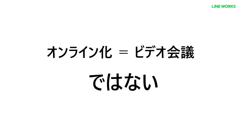 そこで、仕事のオンライン化=ビデオ会議だ!と考える人が多かったようですが、ちょっと待ってください。仕事のコミュニケーションすべてをビデオ会議でおこなうのは、現実的ではありません。そのことは、上の例にあげたようなコミュニケーションが、ビデオ会議でおこなわれていなかったことからも明らかです。