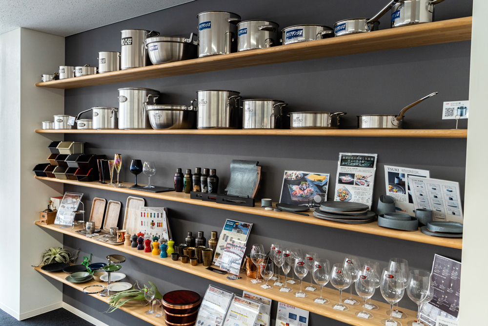 当社は約8万5,000SKUのアイテムを取り扱っており、東京ドームに匹敵する広さの自社倉庫に約5万SKUの商材を常備して、全国の販売店様からの発注に即応しています。「こんな商品がほしい」「こんな商品があったらいいのに」という声をもとにオリジナルブランドも開発し、洋食器や金属加工品の産地として世界的に知られる燕三条地域のメーカーと連携してお客さまの細かなニーズに対応しています。