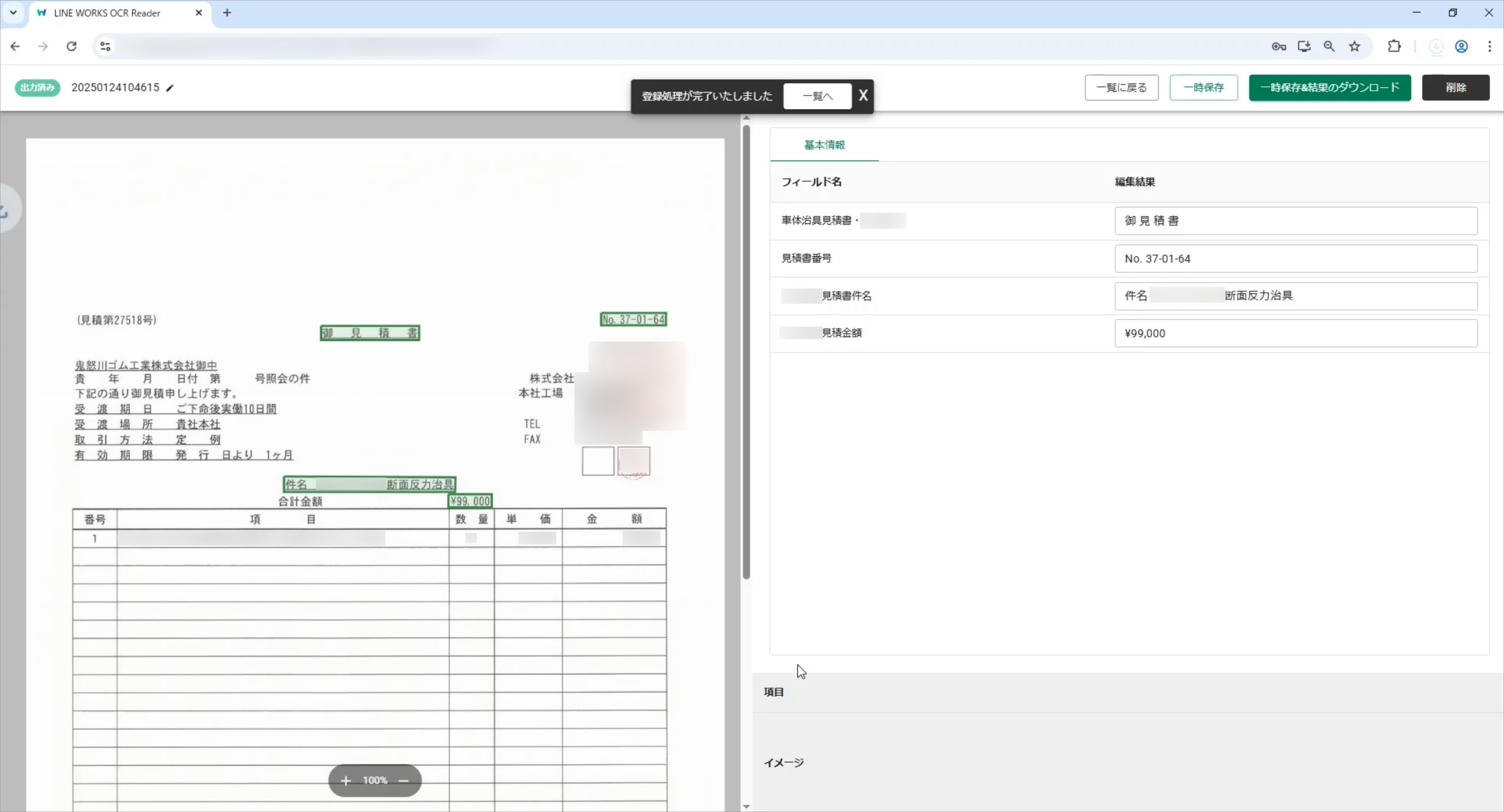 治具の見積書と検収書の読み取りはいかがですか。