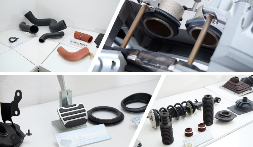 当社は自動車用ゴム部品の設計・製造を主力事業としており、タイヤとワイパーを除くほぼ全ての部品を手掛けています。ドア周りのシール部品が売上の約50%を占め、他にエンジンマウントやホース類なども多数製造しています。ブレーキカップは世界シェアの約7割を誇り、多国籍エンジニアリング・テクノロジー企業のBoschにも納入しています。
