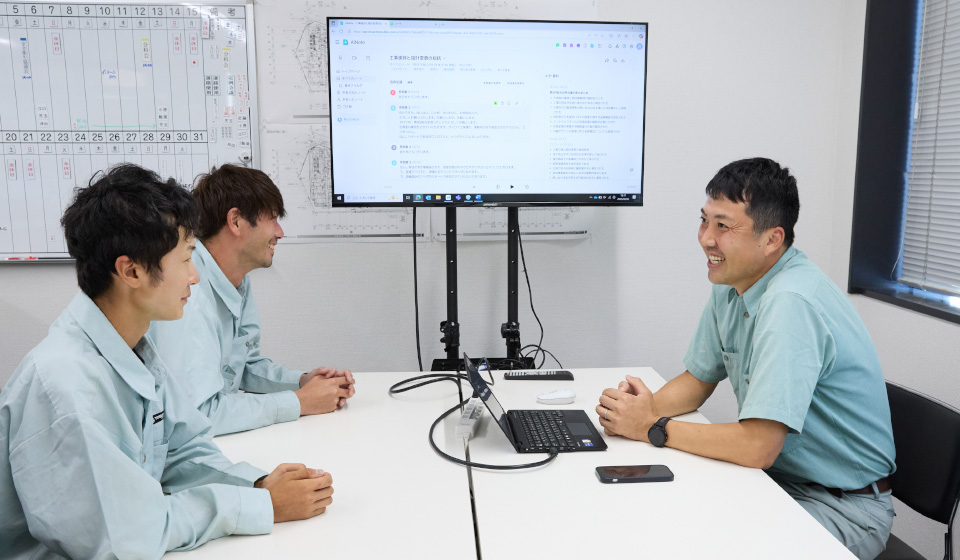 これまでは総合定例会議や設計会議など、比較的規模の大きな会議でのみLINE WORKS AiNoteを活用してきましたが、今後は協力会社の職人との打ち合わせや、毎日の朝礼・終礼なども記録し、欠席したメンバーへの共有事項の伝達に役立てたいと考えています。