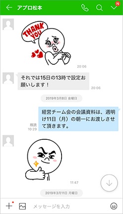 また、これまで社長に送信するメッセージはかしこまった雰囲気になりがちでしたが、お気に入りのスタンプを使って簡潔なやり取りをするようになったので、社員と社長の距離感も縮まったように感じます。
