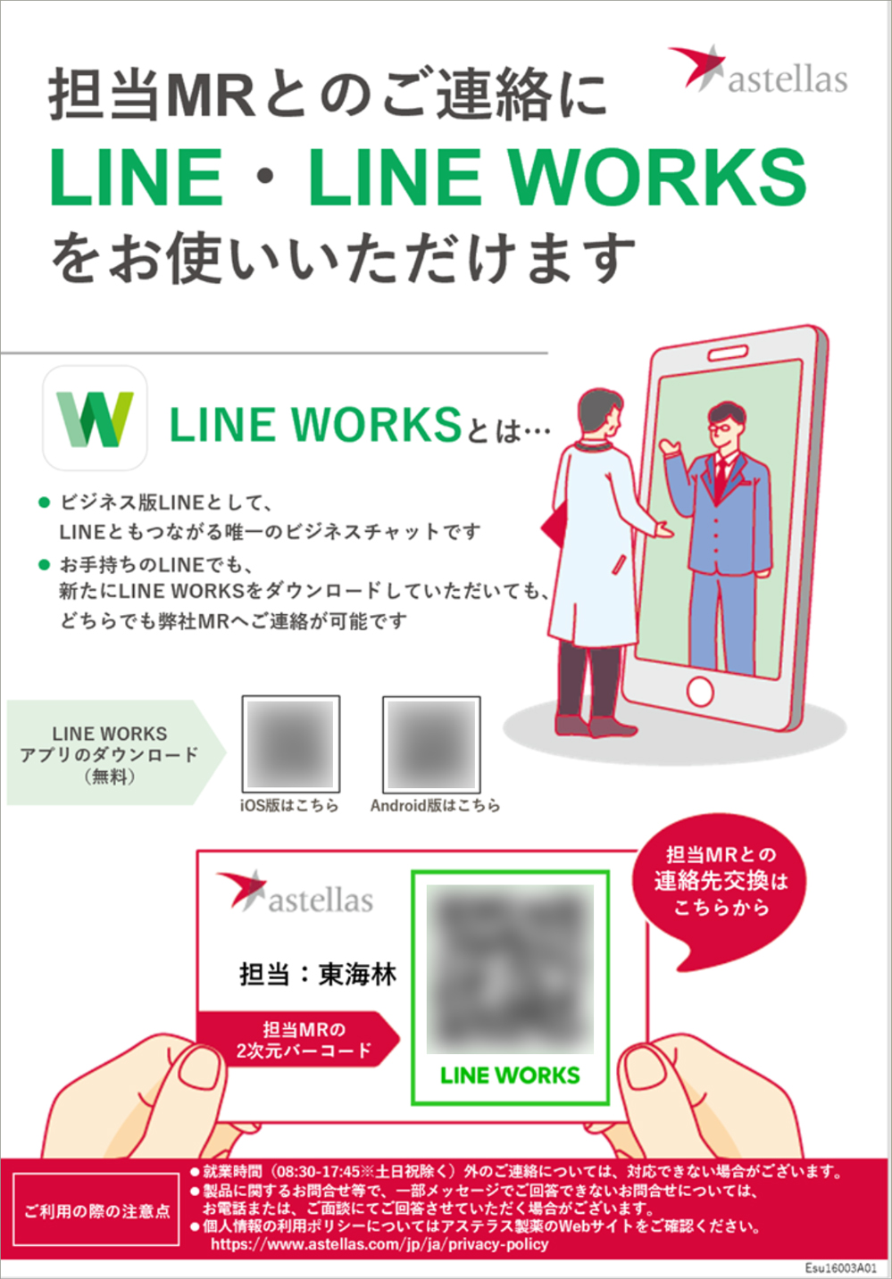 - LINE WORKS IDのQRコードを掲示し、医師のLINEとのつながりを促進