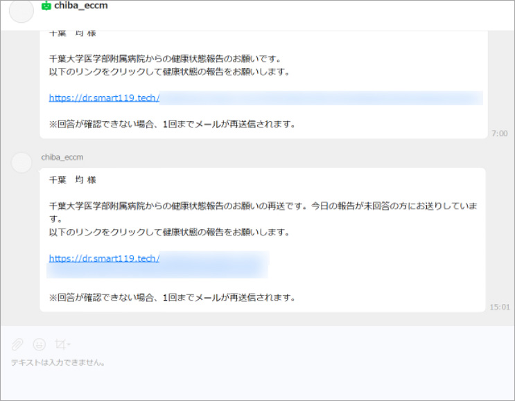「そこでSmart119にSmart:DRとLINE WORKSのAPI連携を依頼し、LINE WORKSのアカウントを持つ約400名の職員には、メールだけではなくLINE WORKSにもBotで通知できるようにしました。LINE WORKS宛てに届いたURLをタップするとSmart:DRの調査画面が開き、即座に回答して送信できる仕組みです」(安部准教授)