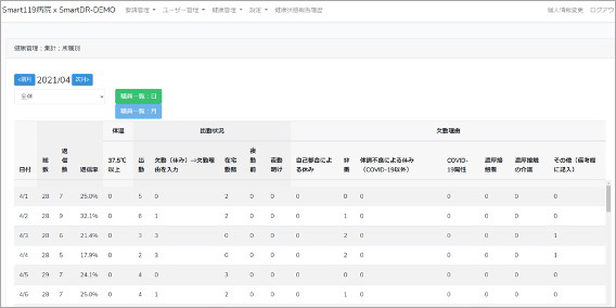 こうした取り組みが急ピッチで進められ、3月からSmart:DRとLINE WORKSの連携を活用してワクチン接種後の副反応を調査する取り組みが始まりました。日々届く大量の回答はSmart:DRに集約され、蓄積されたデータはさまざまな角度から分析・抽出することが可能です。アナフィラキシーショックの発生があればその情報は直ちに国に報告されますが、それ以外のデータは同院や関係機関によるワクチンの有効性・安全性についての学術研究に活用されることになります。