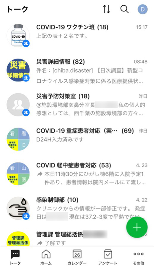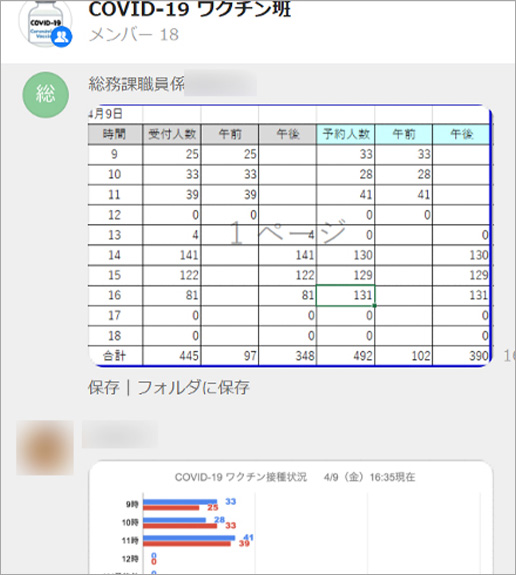 「新型コロナウイルスワクチンの在庫量は、薬剤部がスプレッドシートで毎日管理していますが、関係者全員が把握するためにグループトークでURLを共有しています。最新の数値を常に把握し、それを元にグループトークで常にコミュニケーションを取り合っています。また、院内は非常に広く、会おうとすると移動時間だけで5分以上はかかります。対面コミュニケーションを取りづらいこともあるので、LINE WORKSのアカウントを持つ職員どうしはちょっとした連絡にもトークを多用しています」(千葉看護師長)