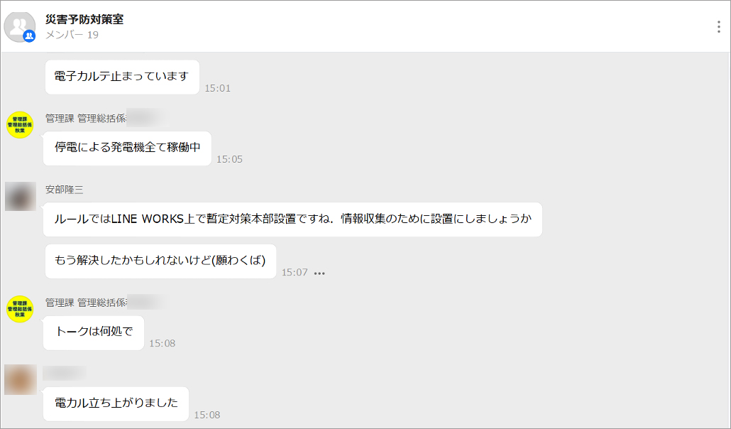 最近、院内で短時間の停電が発生した際には、院内の状況を速やかに把握・共有するのにもLINE WORKSが活躍。以前はそうした場合の情報伝達はPHSで行われていましたが、LINE WORKSを導入してからは情報を共有する速度が飛躍的に高まったと安部准教授は語ります。