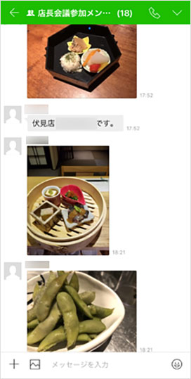 また、栞屋グループでは店舗ごとに工夫した付き出しを提供していますが、LINE WORKSの導入後、本部から抜き打ちでその日の付き出しの画像を提出するよう求められるようになりました。それぞれの付き出しの内容とコストが一覧として店長会議で共有されるため、前回見映えのしなかった店舗の付き出しが次の回にはしっかり改善されるなど、お客様にご提供する料理の品質向上につながっています。店長同士が翌月の売上目標を示し合うようになったり、さまざまな情報共有によって切磋琢磨する姿勢が強まったことを感じています。