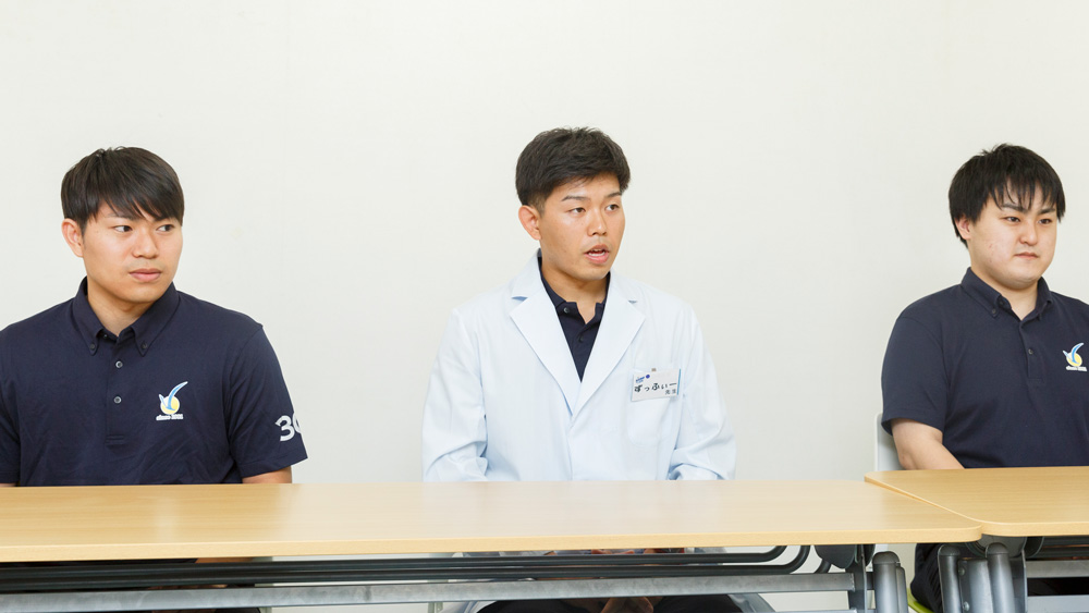 左から、学生担任助手の清水 裕貴さん(右)、学生講師の仁泉 大樹さん(中)、学生担任助手の坂田 啓真さん(左)