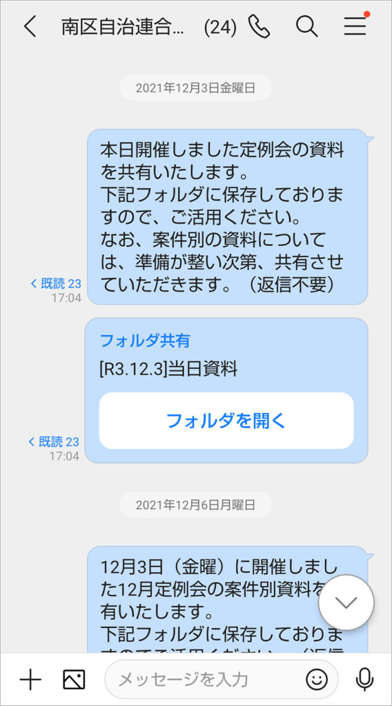 自分が使いたいときにすぐに資料を引き出すことができるフォルダ機能で、資料提供が容易にできることをお伝えしました。それまで会議の資料はEメールで送っていたのですが、行政システムを介したEメールはセキュリティが厳しく、受け手として添付資料を開くのが大変手間だとお叱りを受けていました。その辺りもLINE WORKSであれば容易になることをお伝えしたところ、肯定的な意見も出始め、令和3年度は本格的に使う方向で検討していくことになりました。