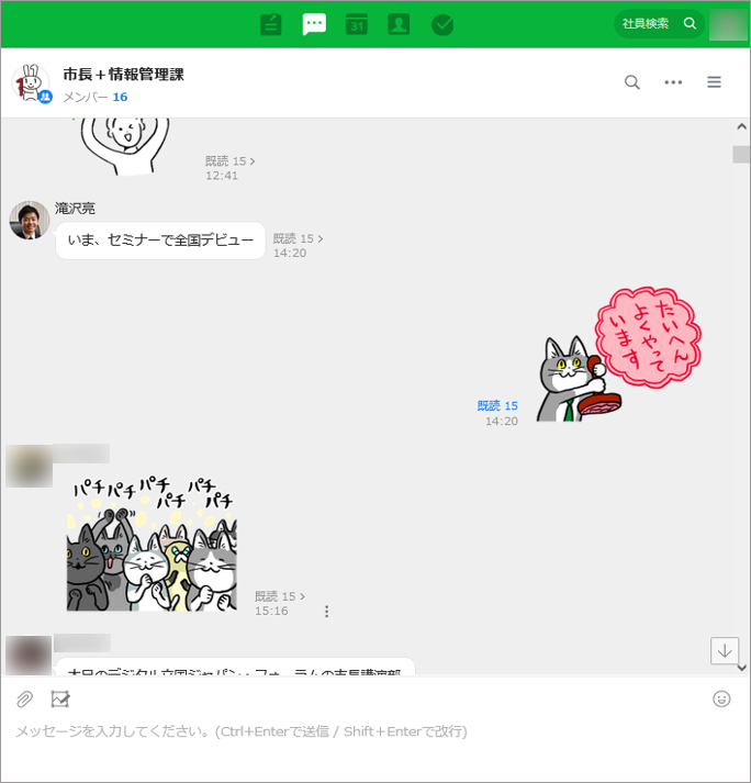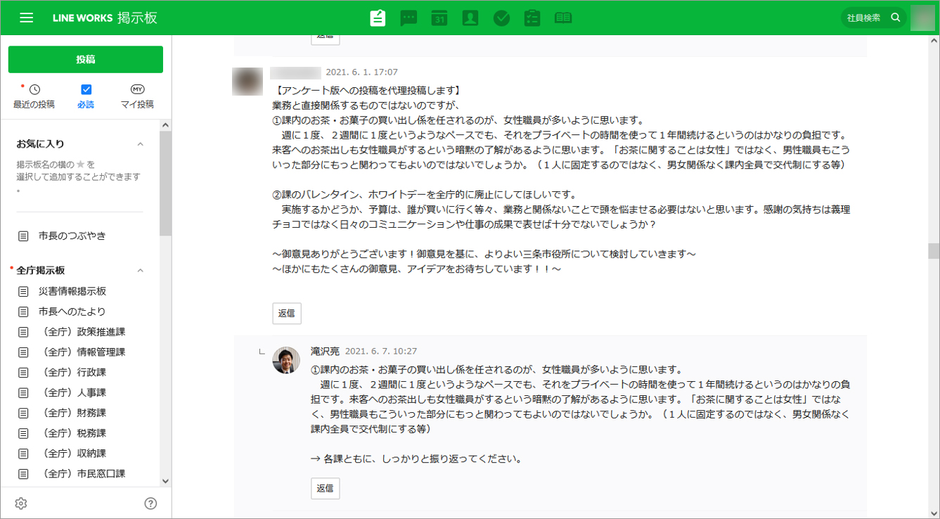 現在、LINE WORKSは職員間でどのように活用し、効果を実感されていますか。