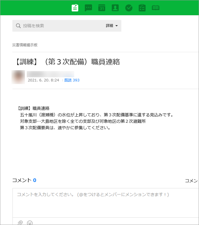 職員の安否確認や災害時の連絡ツールとしても活用するそうですね。