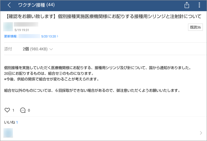 医療機関からも「些細なことでも、時間を選ばず気軽に質問できるので便利になった」と好評です。簡単にコミュニケーションができるので、例えば、ある医療機関からは「私はこの注射針が使いやすいと思いますよ」といったちょっとした意見や感想を写真付きでグループトークで発信いただけることもあります。
