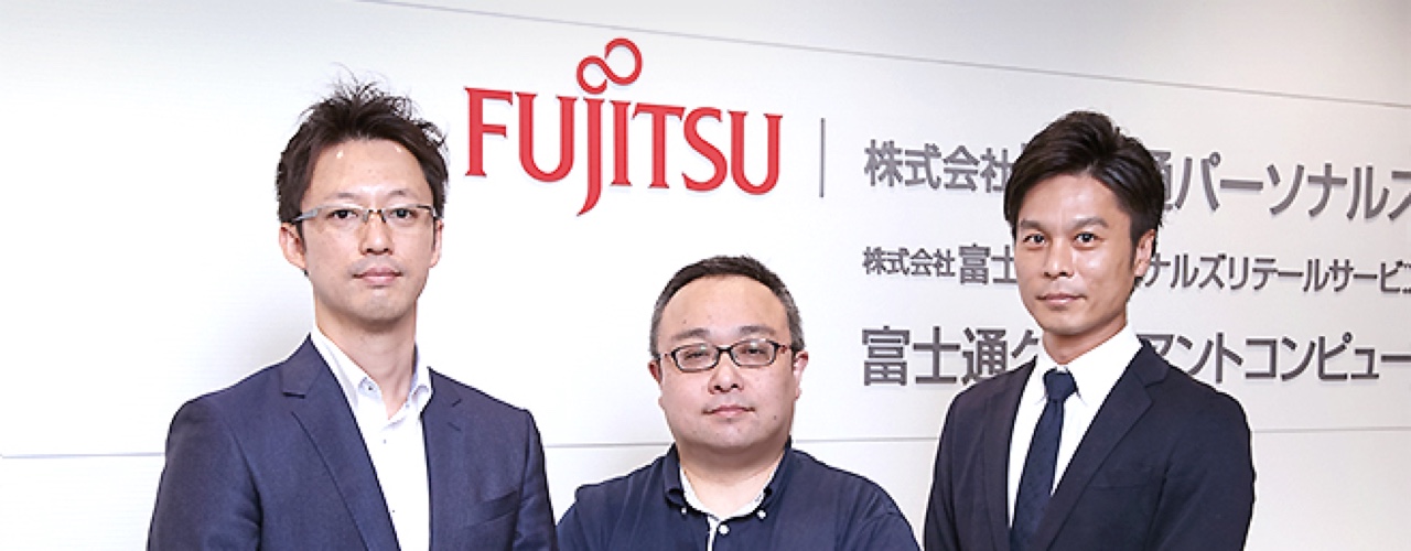一般家電量販店や法人向け流通企業に対し、富士通製品のPC、携帯電話、PCサーバーなどの販売やサポートを行う富士通パーソナルズ様は、LINE WORKSを導入したことで業務効率が向上し、働き方改革の推進につながっています。同社のIT推進室担当課長である八坂さん、ソリューション営業本部東京支社課長代理の村岡さん、ソリューション営業本部ソリューション営業支援センターの竹村さんに、LINE WORKS導入の経緯や導入後の変化などについてお話をうかがいました。