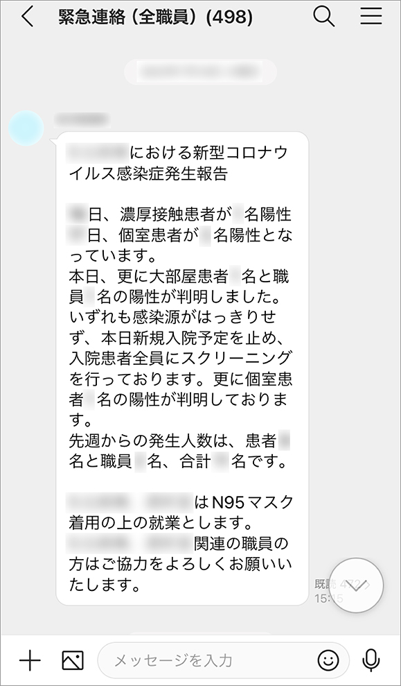 医師や看護師、臨床工学士、薬剤師など、職種をこえたやりとりも電話やメールに代わってグループトークで行うようになりました。以前は電話をして相手の業務を中断させてしまうことに抵抗がありましたが、LINE WORKS導入後は、返信がなくても誰が既読か分かるので、以前のように何度もメールを送ったり電話をかけたりして連絡が行き届いているか確認する手間がなくなりました