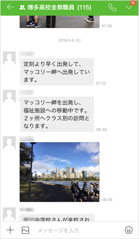 最近、看護科が海外へ修学旅行に行きましたが、引率の教員が現地での模様を写真とともに報告し、私たちもその状況をリアルタイムに把握できるようになりました。さらに、多くの教職員が個人のスマートフォンにもLINE WORKSを入れていることから、週末に突発的に生じた業務連絡を、月曜日を待たずに共有できるようになっています。