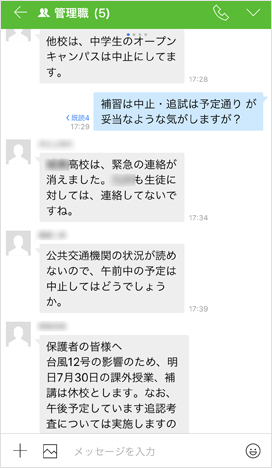 教職員がどこにいようと確実に情報を通知できるので、保護者から生徒への急ぎの連絡が入った場合、以前のように担任や副担任を探し回る必要もありません。また、授業中に体調を崩した生徒がいれば、学年のグループトークでその情報を共有するなど、生徒保護の観点からもよりきめ細かな目配りができるようになったのも成果の一つです。