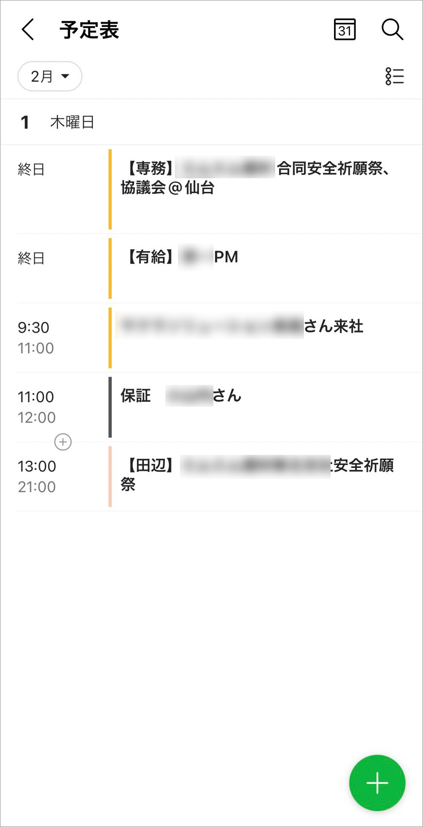 カレンダーには社内の予定を入力。いつ・誰が・どこで・何をするのかを可視化している