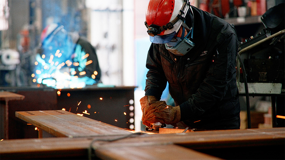 1970年に創業した長谷川鉃工では、主にビルや学校の体育館などの骨組み部分を製作しています。ロボット溶接による複雑な加工を得意としており、高い技術と信頼を得ています。