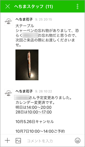「LINEのようでLINEではない」、というのも魅力です。ビジネスユースでありながら堅苦しい雰囲気ではないので、「楽しく働きながら、するべきことはきちんとする」をモットーとする当店のような職場にはまさに最適なツールでした。