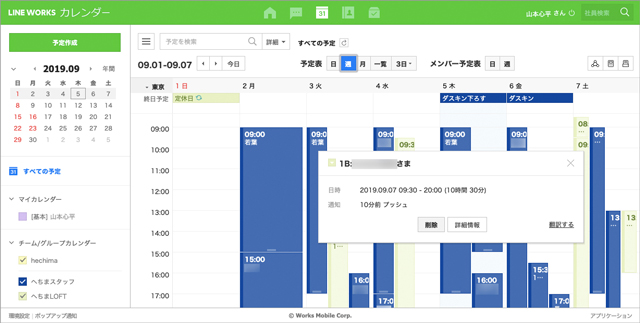 カレンダーについても、自分や他のスタッフの勤務シフト、館内施設の予約状況をいつでも自分のスマホから確認できるのでとても便利だと思います。