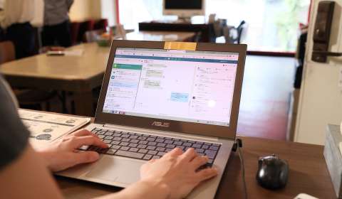 私はマネージャーですが店外にいることがほとんどです。それでもPCやスマホさえあれば、どこからでも現場の様子がタイムリーにわかりますし、現場で判断できないことの相談事が生じた際も、電話やメールより気軽に連絡をもらうことができます。3フロアに渡る施設を、アルバイトスタッフ1人体制でのシフトで運営できるのも、こういったツールがあってこそですね。