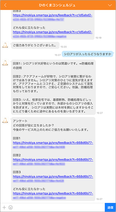 AIチャットボット「ひのくまコンシェルジュ」による自動応答の例