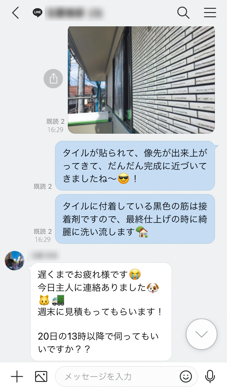 - お客様や施工店様のLINEとつながり、対面できなくても円滑なコミュニケーションが可能に