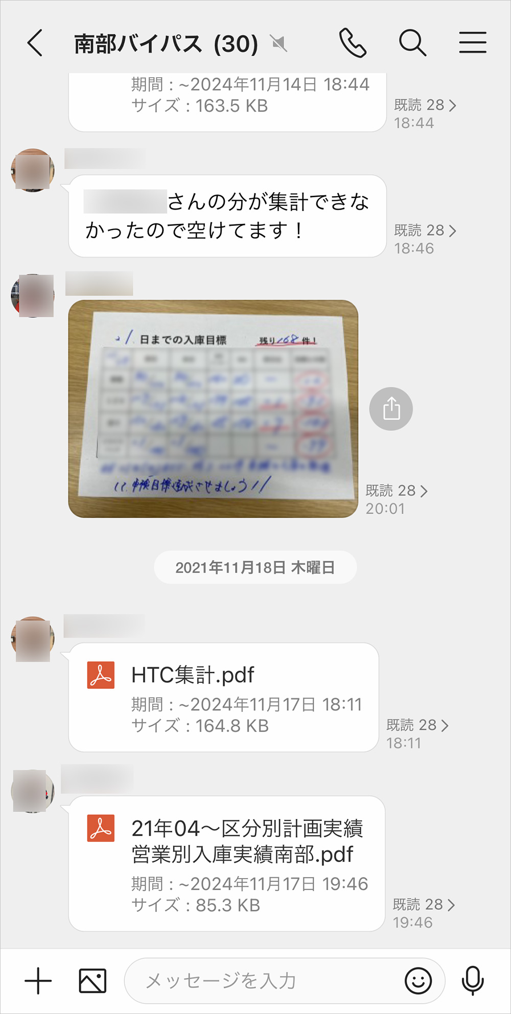 工場では、国が定める保安基準の変更点を整備担当者に伝えたりする機会がよくあります。LINE WORKSが導入されるまではプリントして手渡していましたが、今は資料データをトークルームに送信するだけなので、すぐさま全員に周知できています。