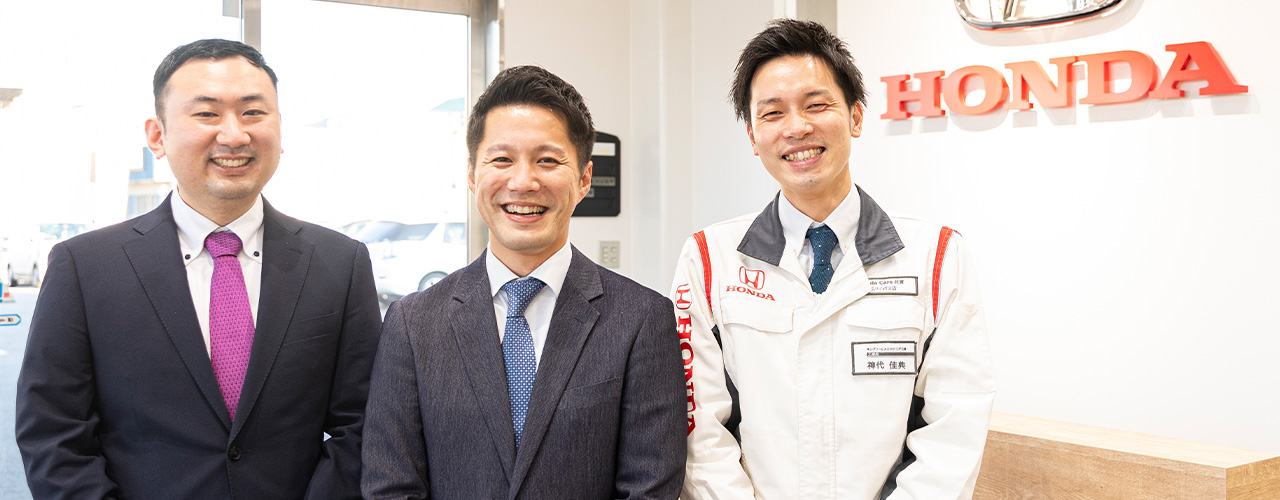 ホンダ車のディーラーである当社は、佐賀県内に新車販売店5店舗と、中古車販売店1店舗を展開しています。公共交通機関が大都市ほど発達していない佐賀のような地方において、車は生活必需品です。買い替え・整備・車検をはじめとするニーズにきめ細かくお応えすることで、地域の皆様の快適な生活をサポートしています。