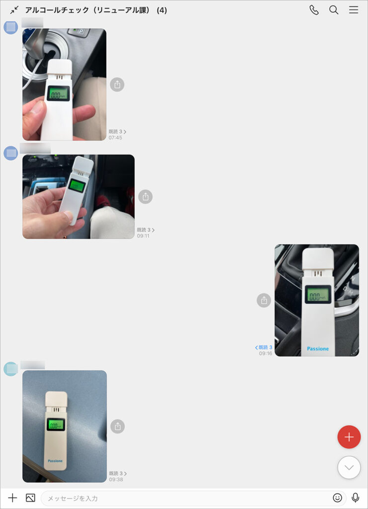 社用車を使う事業者のアルコールチェック義務化に伴い、業務で車を運転する社員が、アルコールチェッカーで検査した数値を写真に撮ってアップするためのグループを運用するようになりました。
