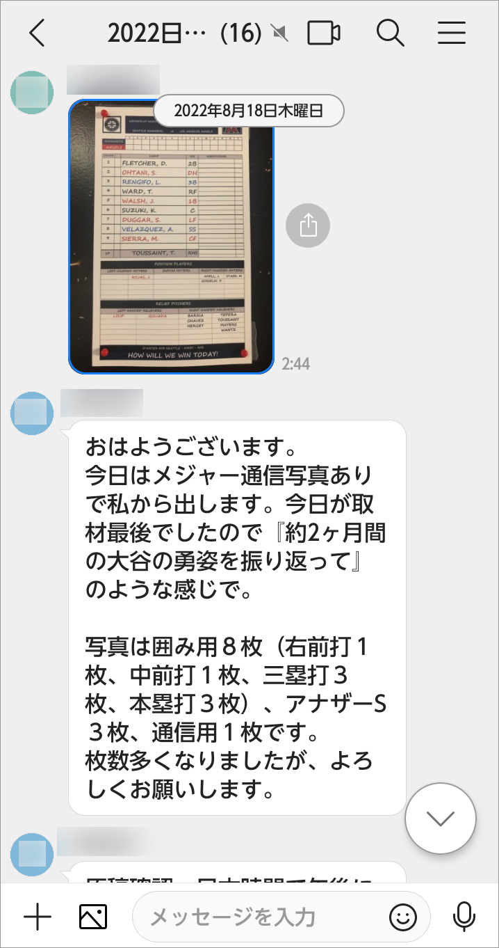 大谷翔平や菊池雄星を追って、大リーグを取材している現地記者や現地のコーディネーターとも「グループトーク」でやり取りしています。具体的には、「今晩の試合のニュースがどれくらいの扱いになるのか」「どれくらいの文字量になりそうか」を共有してもらっています。