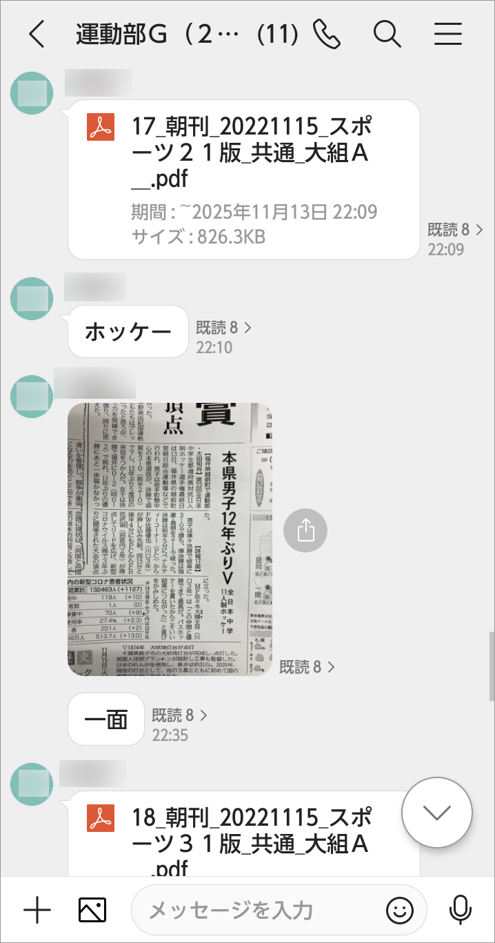 運動部では主に「グループトーク」を使い、部長やデスクに取材場所への到着連絡や出稿する記事の内容など各種情報の共有をしています。