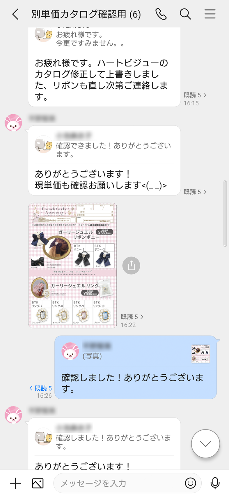 一部の取引先とは外部トーク連携を活用し、取引先から店舗内にある商品ラックの写真をトークで送ってもらい、当社の担当者が補充すべき商品を判断する仕組みを採り入れました。以前は電話やFAXでの発注のため、書き間違いや聞き違いによるミスが起こりがちでした。しかし、商品ラックの様子を写真で見て確認することで、お互いの受発注にかかる手間は大幅に削減されています。